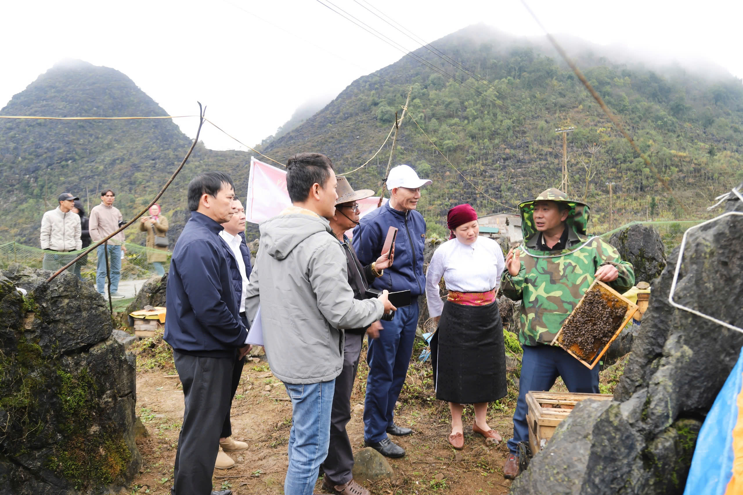 Đoàn tham quan đã đến tham quan mô hình nuôi ong mật khai thác từ hoa bạc hà của của hộ Vàng Thị Mánh thuộc HTX Hà An Thành Ma Tủng, thôn Thành Ma Tủng, xã Sà Phìn, huyện Đồng Văn, tỉnh Hà Giang. Tại đây các thành viên đã được lãnh đạo HTX giới thiệu quy trình nuôi và chăm sóc con ong giống; phòng trừ dịch bệnh cho đàn ong; kỹ thuật nhân đàn; kỹ thuật khai thác và bảo quản mật ong bạc hà; giám sát chất lượng trước khi đưa ra thị trường tiêu thụ đối với sản phẩm mật ong bạc hà; công tác xúc tiến thương mại và quảng bá sản phẩm mật ong bạc hà;…